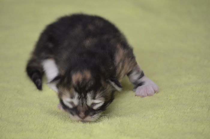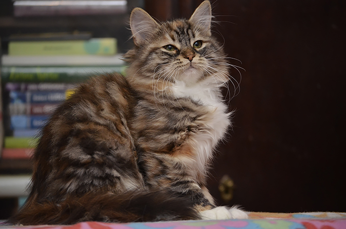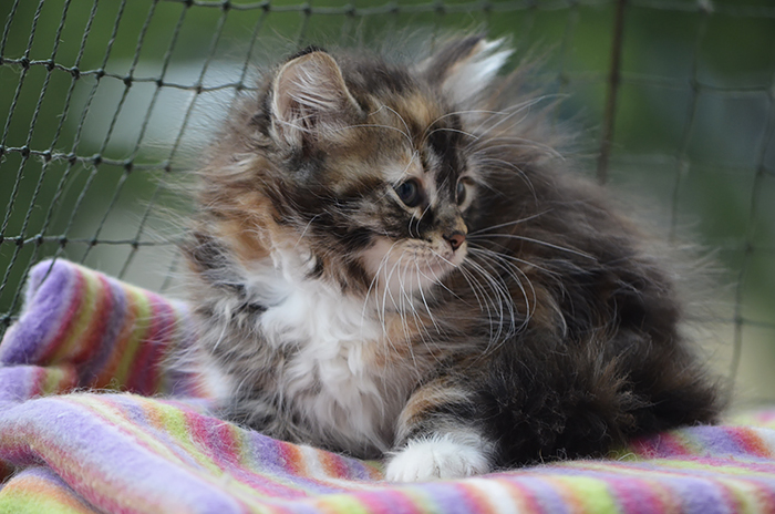 SIB f 09 22 (czarna szylkretka z białym klasycznie pręgowana) Ur. 03.07.2020 Zamieszkała z Martą w Düsseldorfie Rodowód