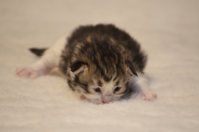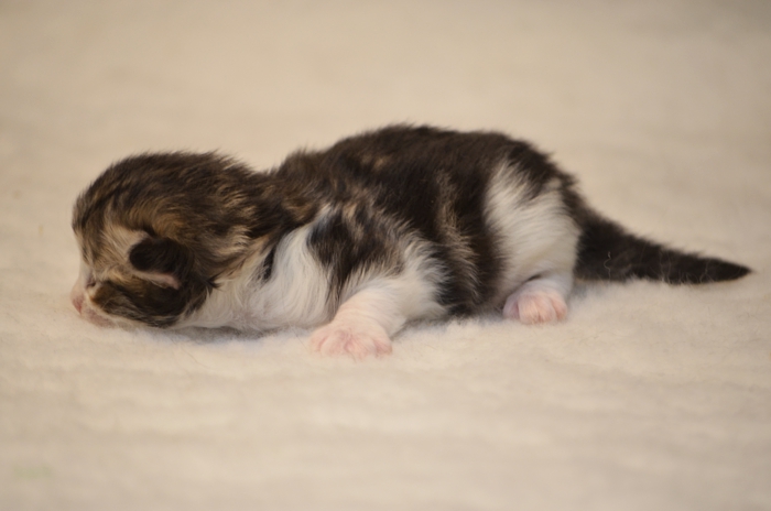 SIB n 03 22 (czarny bicolour klasycznie pręgowany) Ur. 23.11.2021 Zamieszkał z Milenką w Głogowie Rodowód