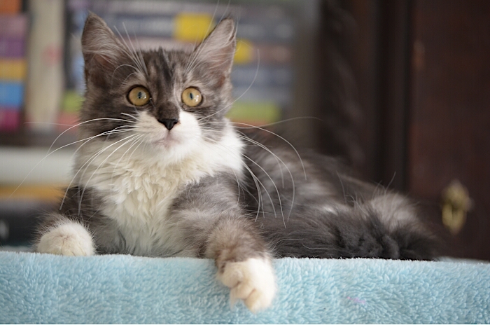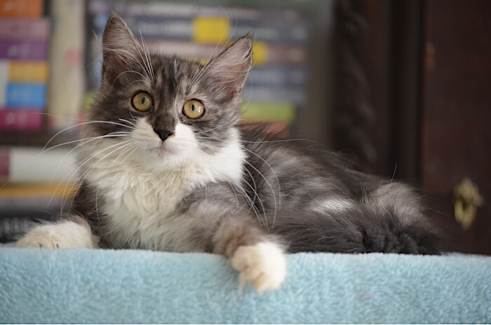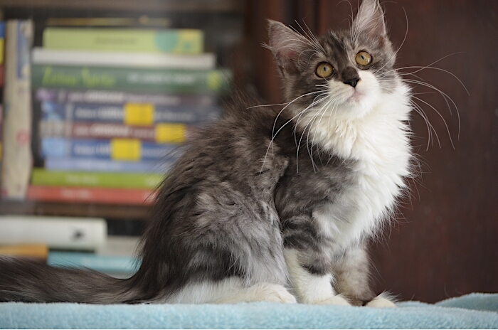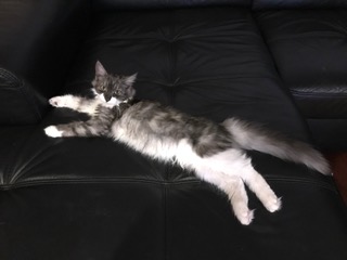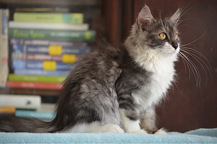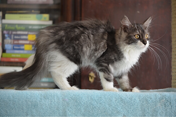 SIB ns 09 22 (czarna srebrzysta z białym, klasycznie pręgowana) Ur. 27.03.2019 Zamieszkała z Jolą w Londynie Rodowód