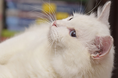 (biały z pomarańczowymi oczami)