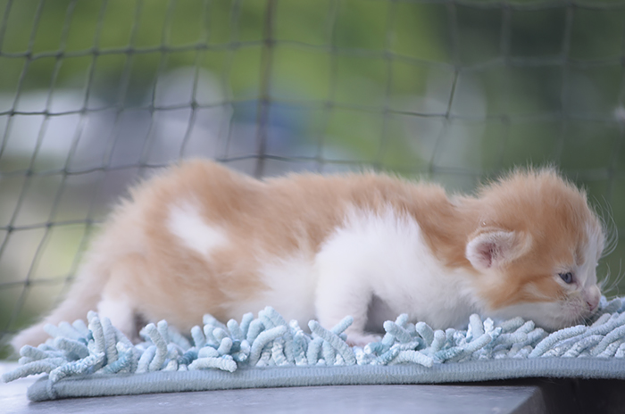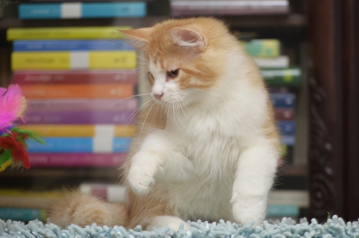 SIB d 03 24 (rudy bicolour cętkowany) Ur. 13.07.2021 Zamieszkał z Ingą w Kiejdanach (Litwa) Rodowód